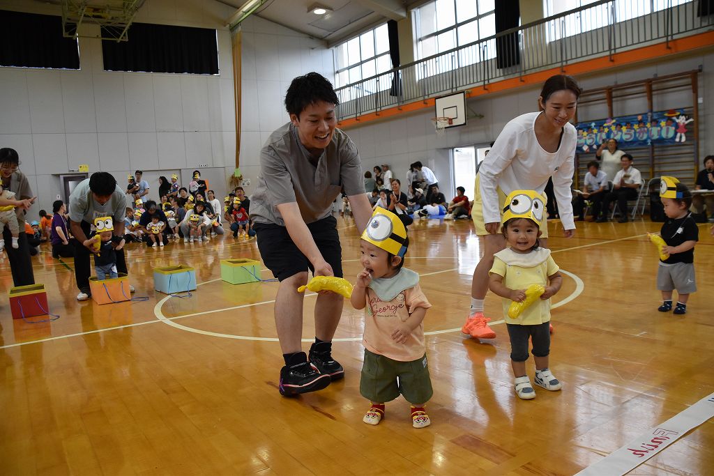 とり組から。ミニオンになって落ちているバナナを拾ってゴールします。
