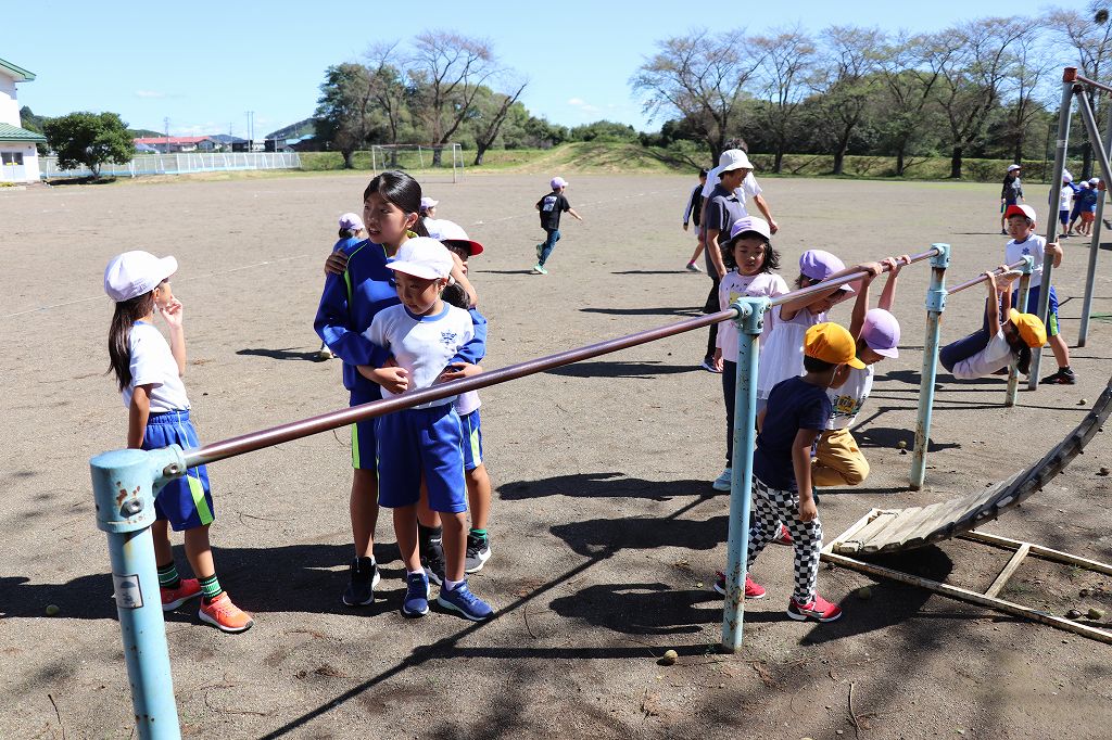 1年生と交流という予定でしたが、全学年と交流し遊ぶことができました。