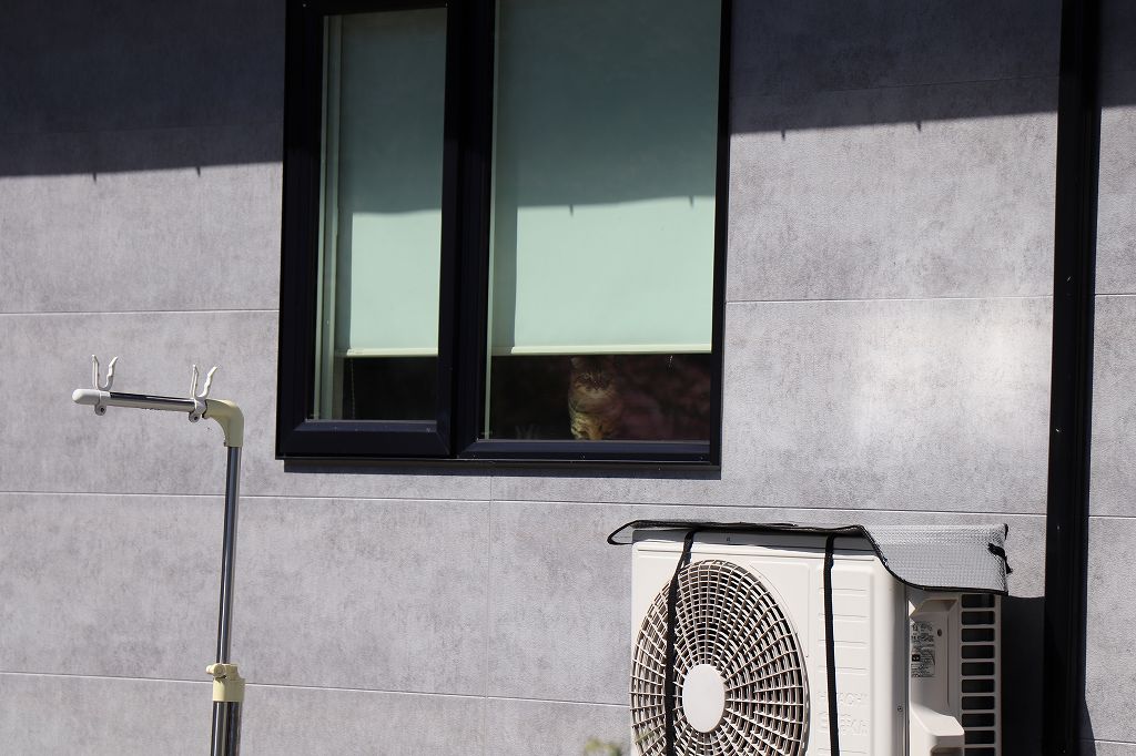 平笠小学校からほど近く。なおこ先生宅。猫のムギが見ていました。