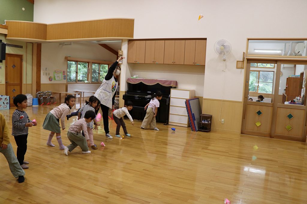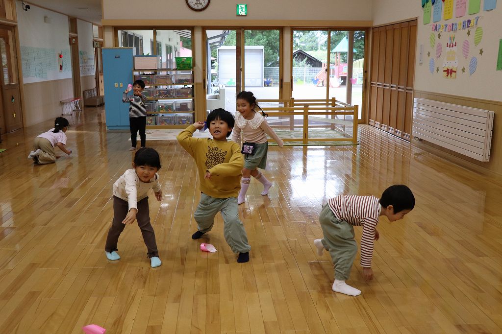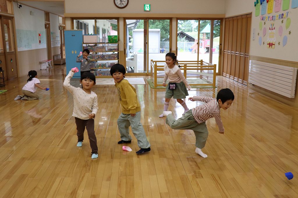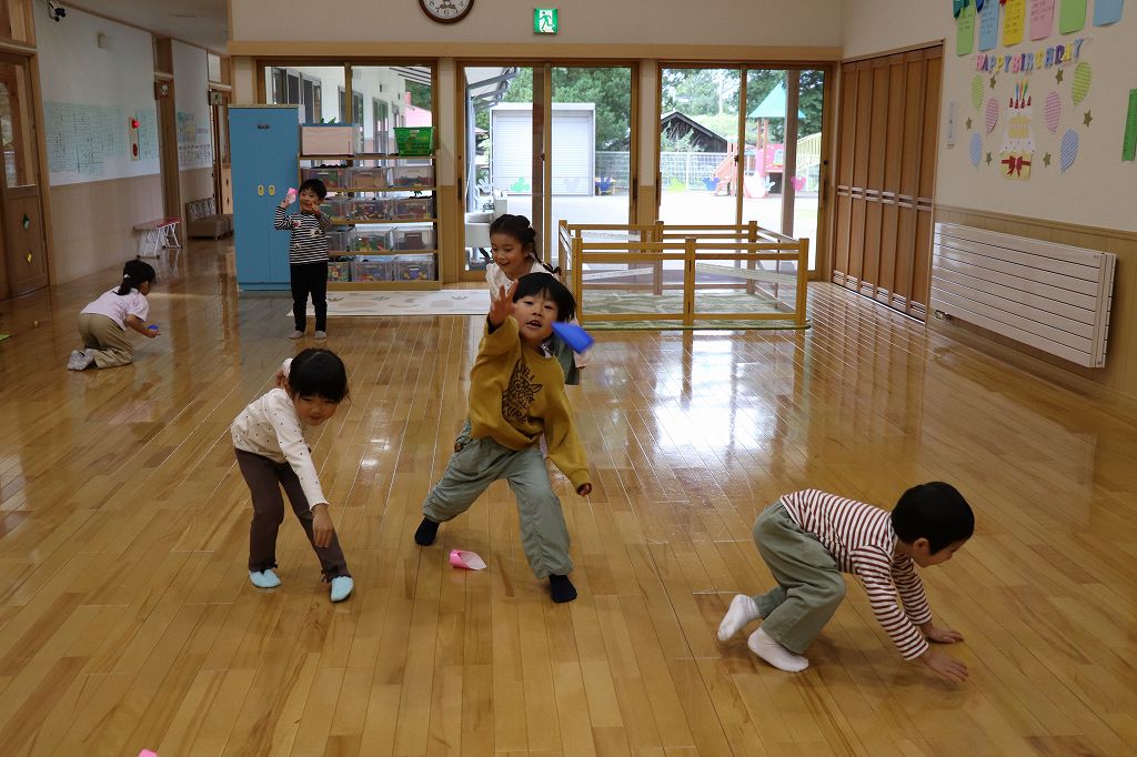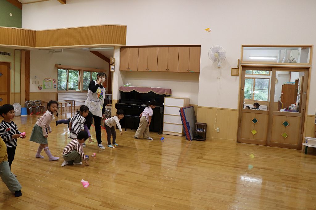星組、折り紙で紙飛行機ではなく、なにやら飛ぶものを製作。