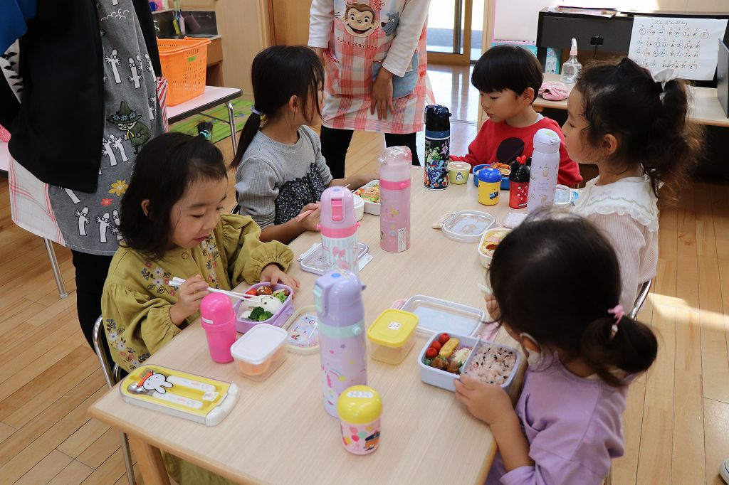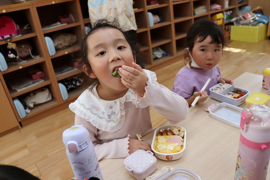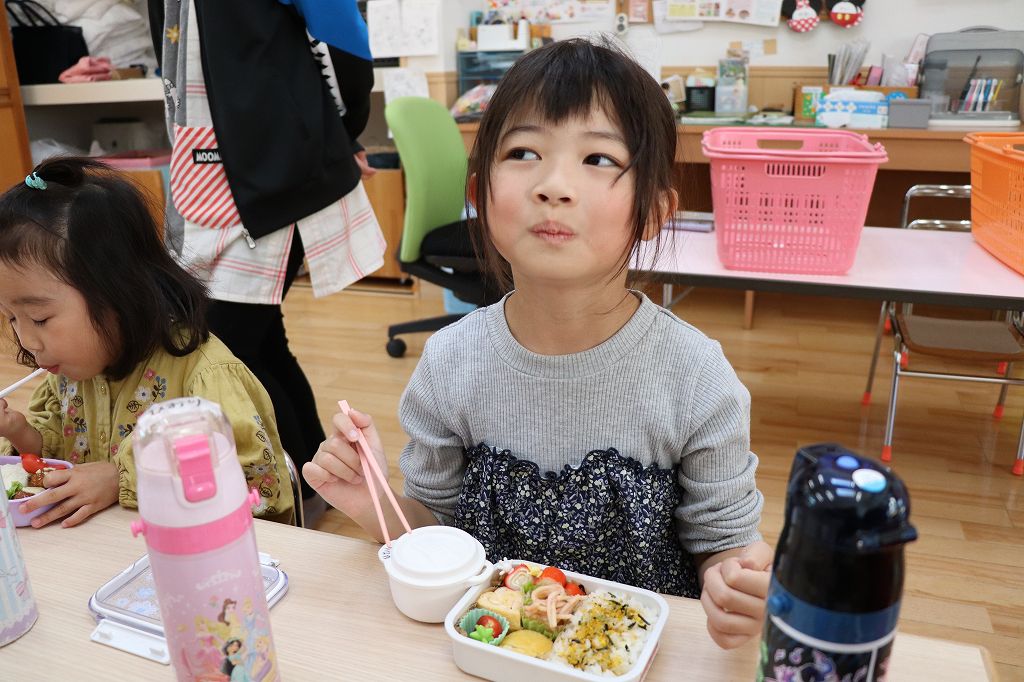 七五三は雪組以上が対象で、雪組さんは全員帰ったので、残った以上児さんでお弁当を食べました^^