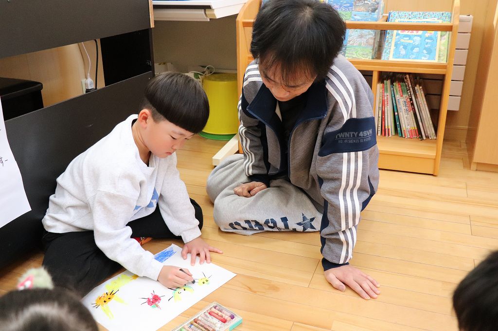 演奏会の後は3クラスの好きな場所で『コマ』『かるた』『おえかき・折り紙』を楽しみました。