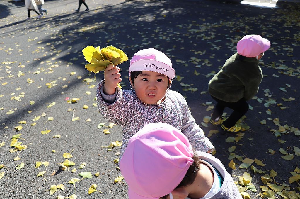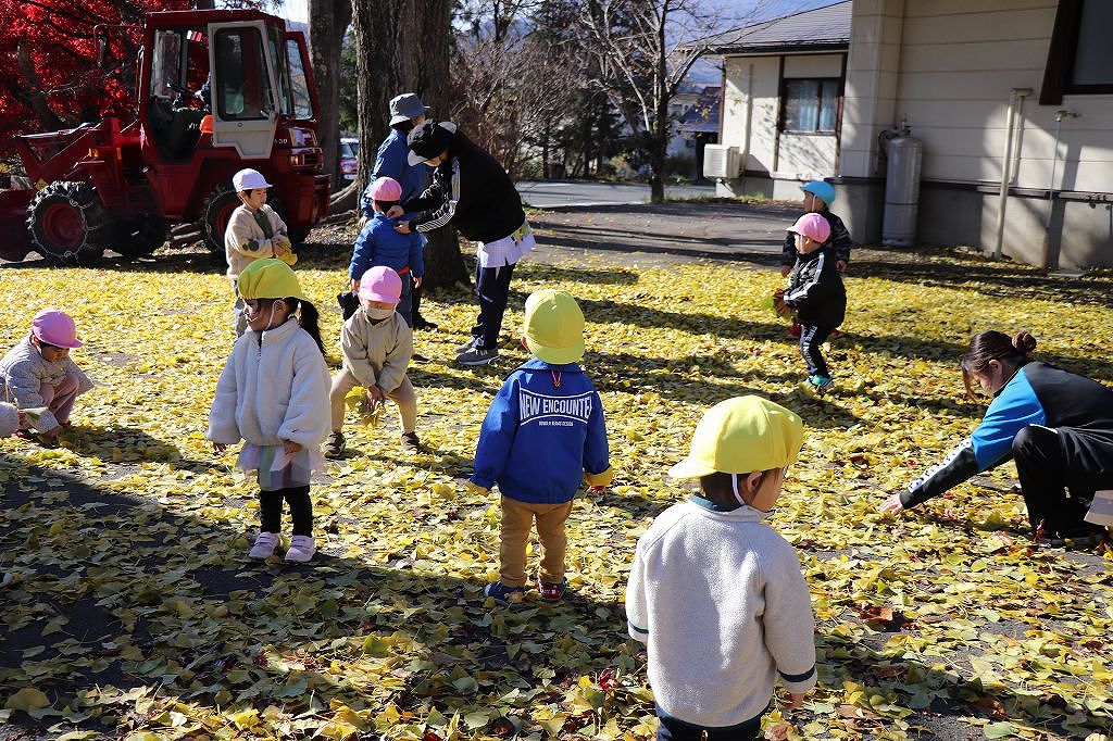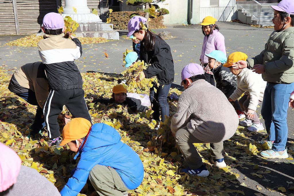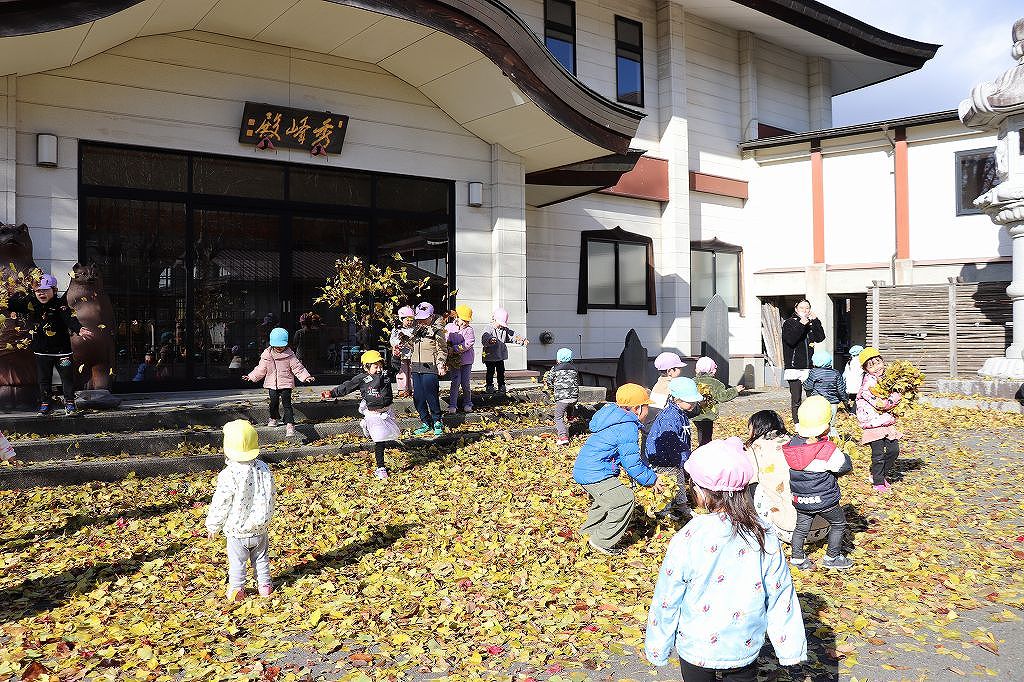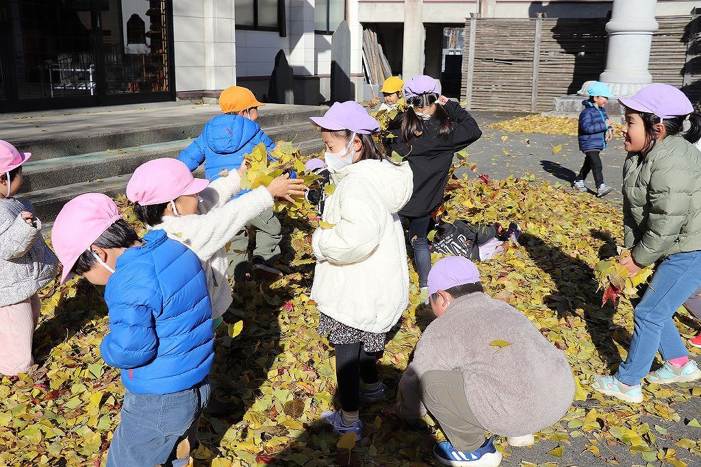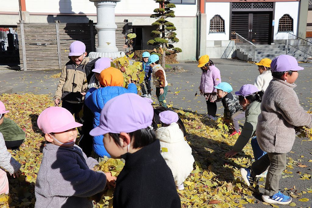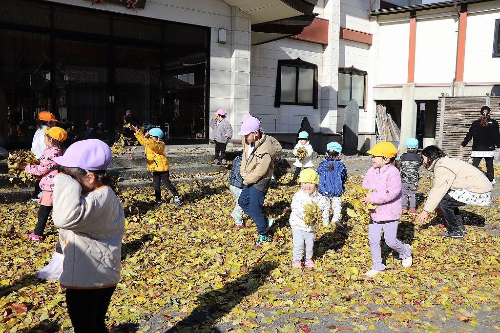 お寺さんのいちょうがいっきにドサっと落ちました。
