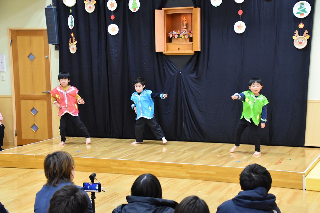 星組男児3名。人数が少ないんです、ずっと。女児に圧倒されながら癒し担当(?)な星組男児です。この曲にすると聞いた時、大丈夫!?と思いましたが、イメージが一新。かっこいい!曲のかっこよさ、本家と同じ振り付けを取り入れたと担任のまなか先生。この子達が来年度の花組です!がんばれ!
