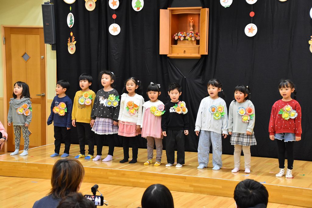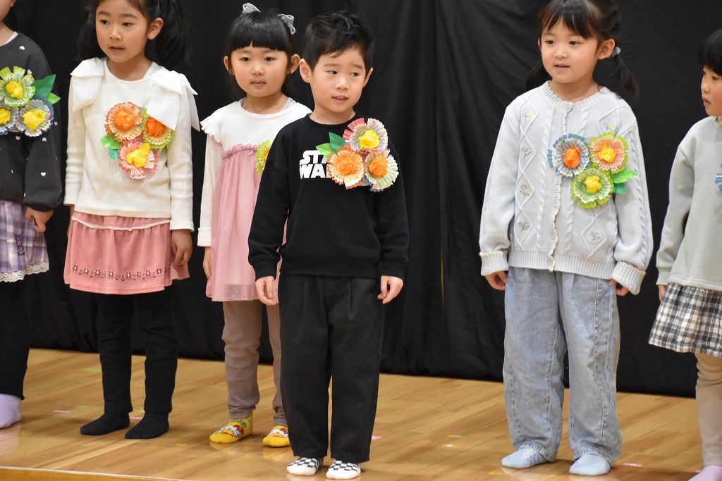 園長は弾くのに必死で、胸元に飾られたコサージュにあとから気づきました。初めてのピアノ合わせ練習が12月初めでしたが、とても上手でびっくりしたのを覚えています。しかもソロがある…4人も!?ひょえ~!って感じで、驚きました。そして、音程が取れている子が多いことにも驚きました。東慈寺保育園の子は歌がうまいよね、小学校の先生方にもお声がけいただくことが多いです。ただ元気に歌うことだけど教えてない、、という感じですかね。叫んで歌ってもステキじゃないこともあるので。そんな先生たちの気持ちや思いがみんなにも伝わって、保護者の方にも伝わっていればいいなと思います。
