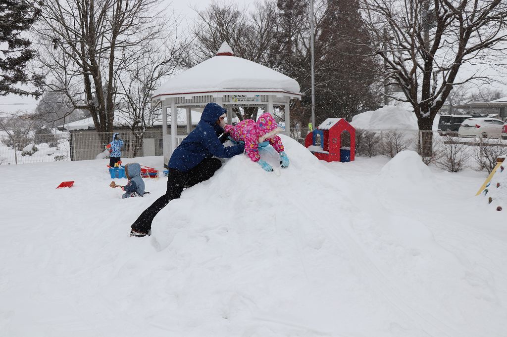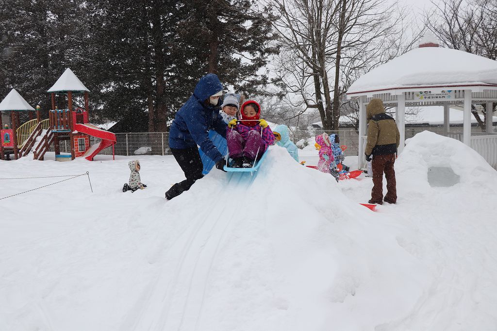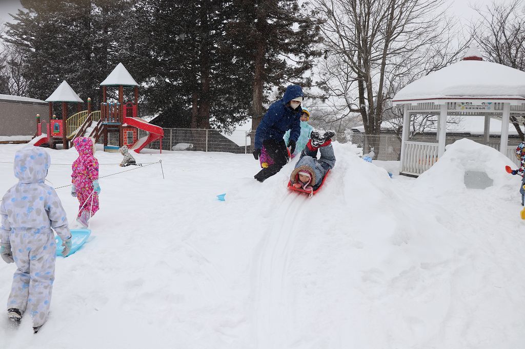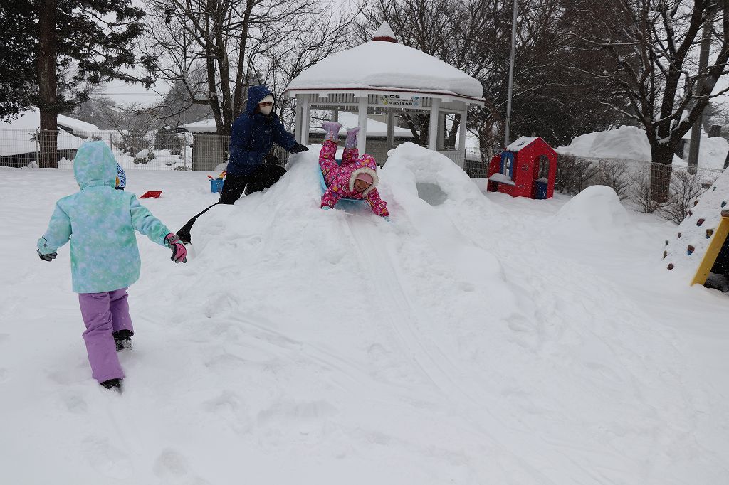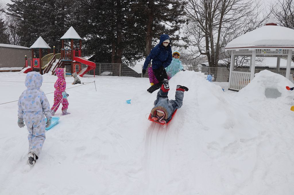 2026.01.29 日記 ソリだいすき! 小瀬さんが園庭にローダーで作ってくれた雪山!これはもう、ソリ山だーー⛄それなりの傾斜があってとってもたのしい!雪国の田頭は寒くて雪解けは先。まだまだ遊べるね!