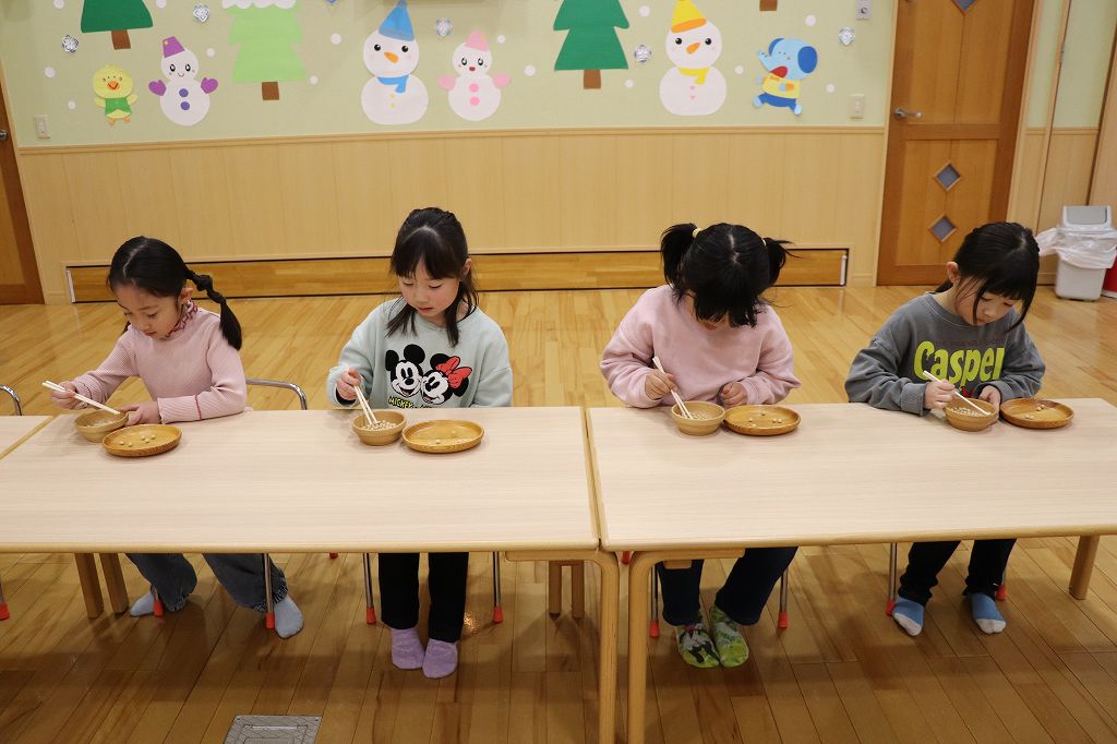 以上児は『おはしでまめすくいゲーム』をしました。