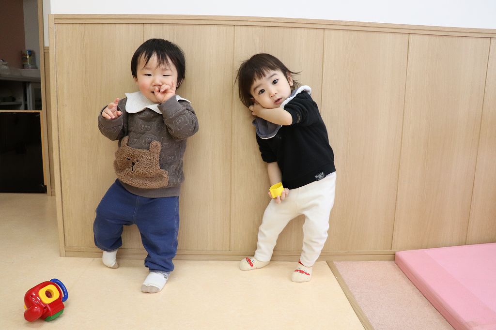 製作の横でポーズとる二人。癒されるワー