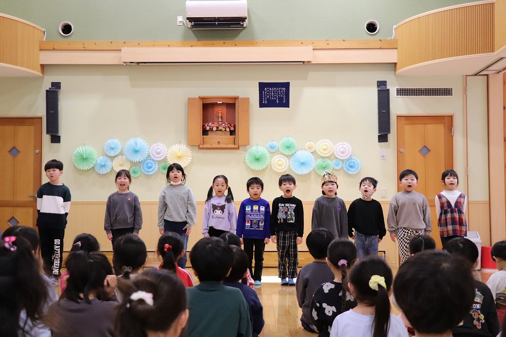 花組の歌は『思い出のアルバム』春生まれの子は春のパート、夏生まれは夏、という組み分けで歌いました。心がじーーんと温かくなりました。