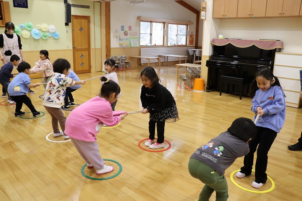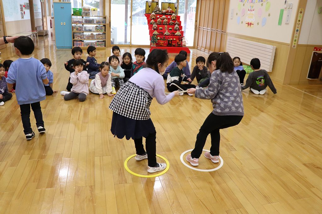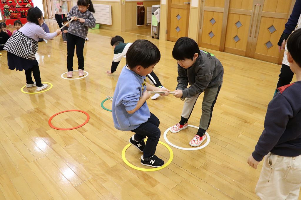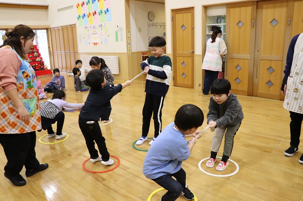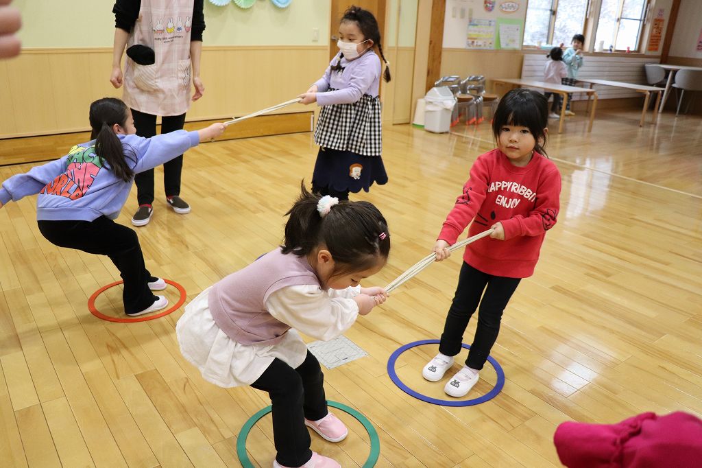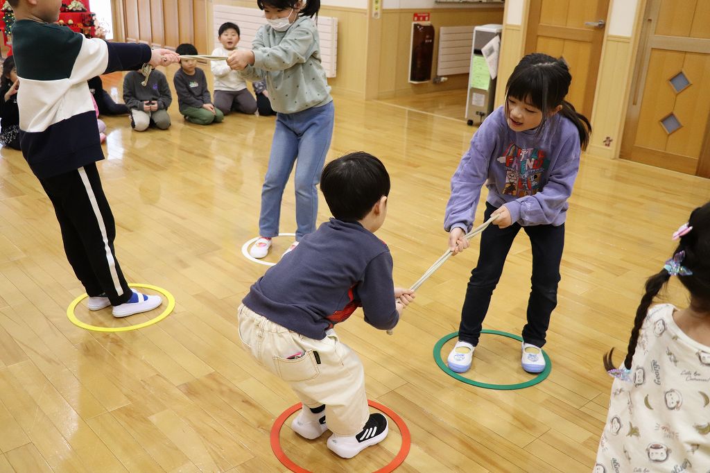 2026.03.24 日記 ひっぱり相撲 春場所の前後、東慈寺保育園にはお相撲ブームがやってきます。相撲にはいろいろな種類があって、子どもでも楽しめるのです。この日はひっぱり相撲。力比べで楽しみました。