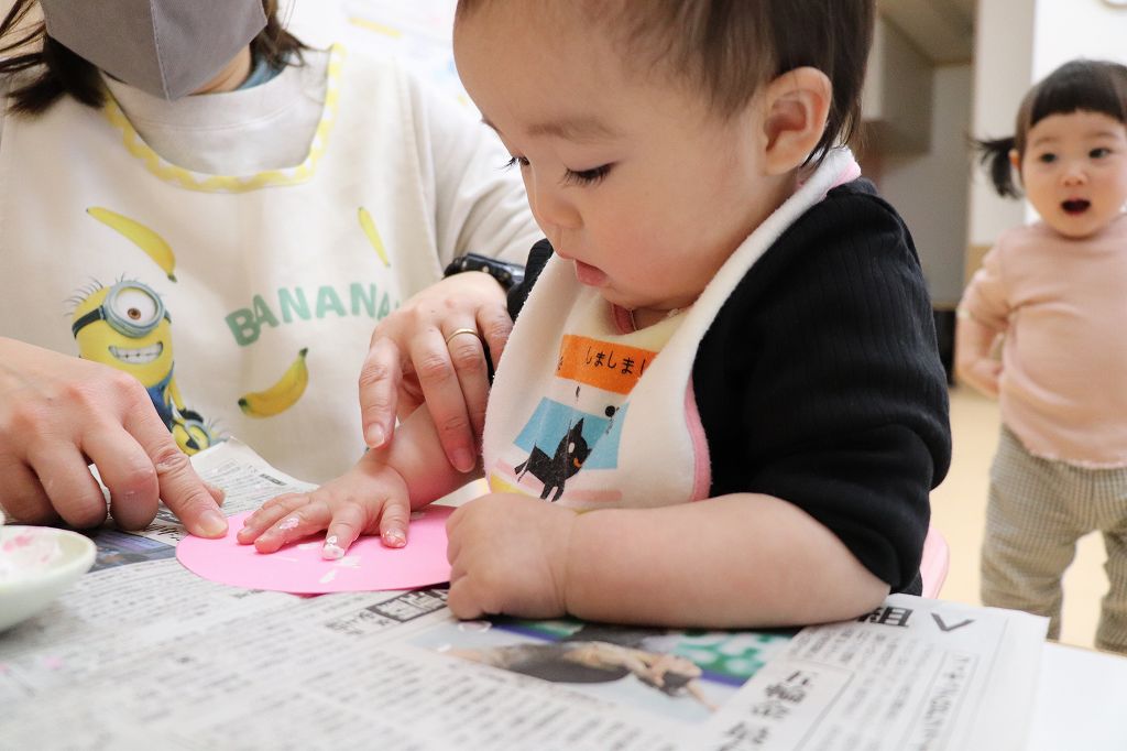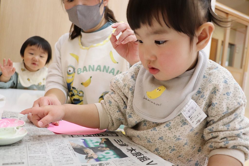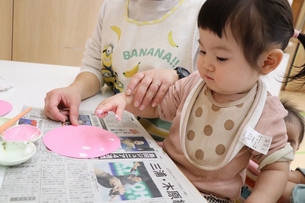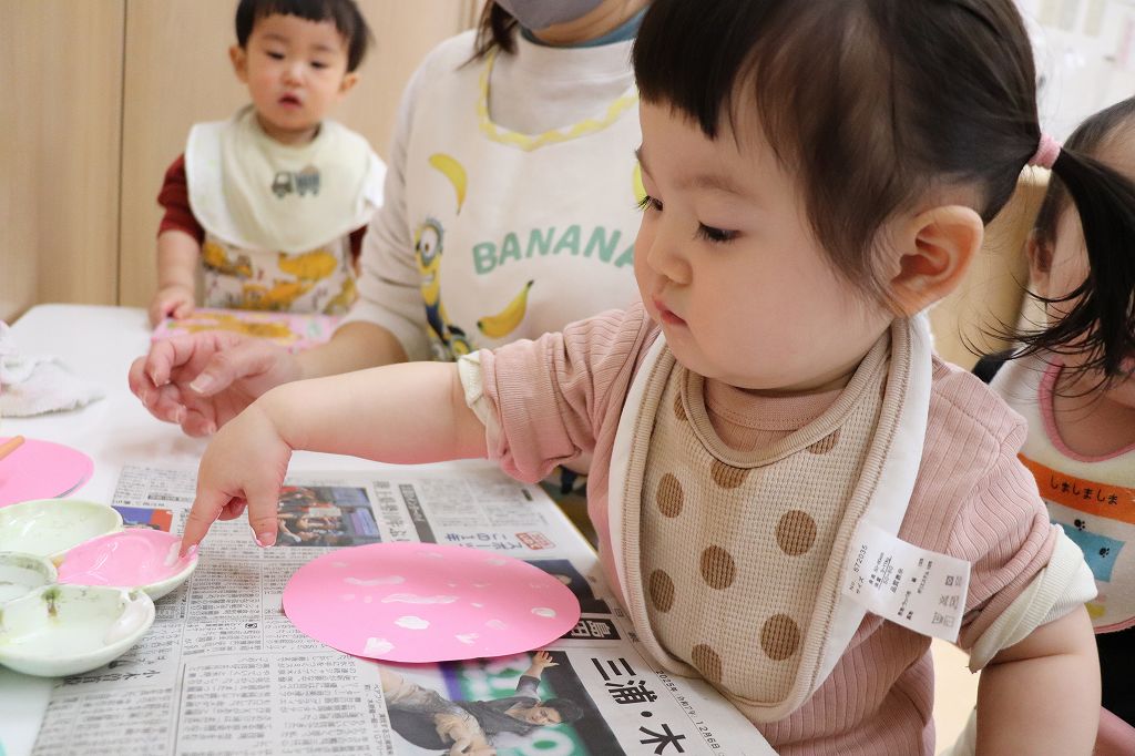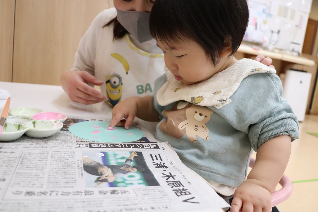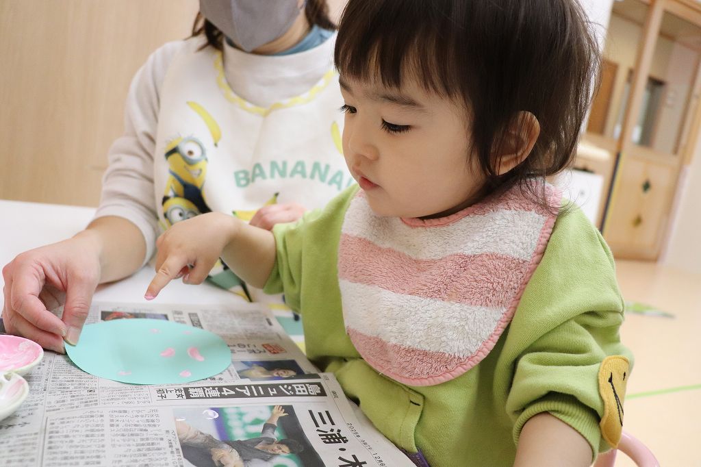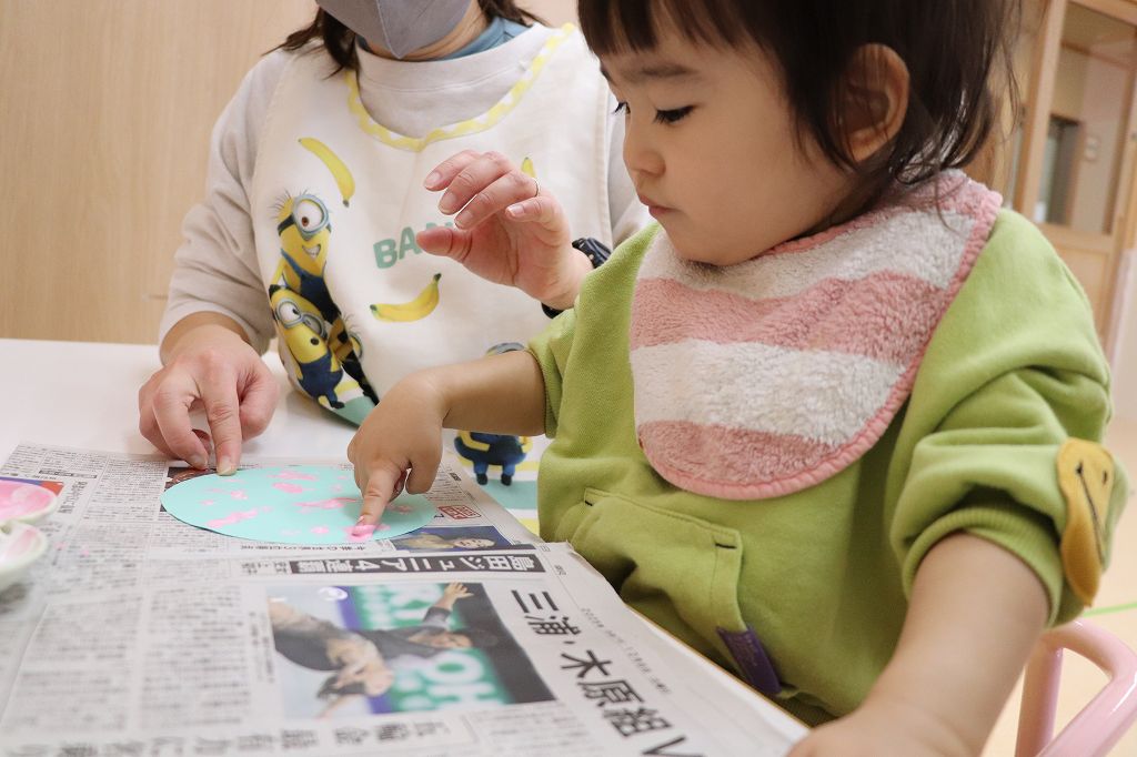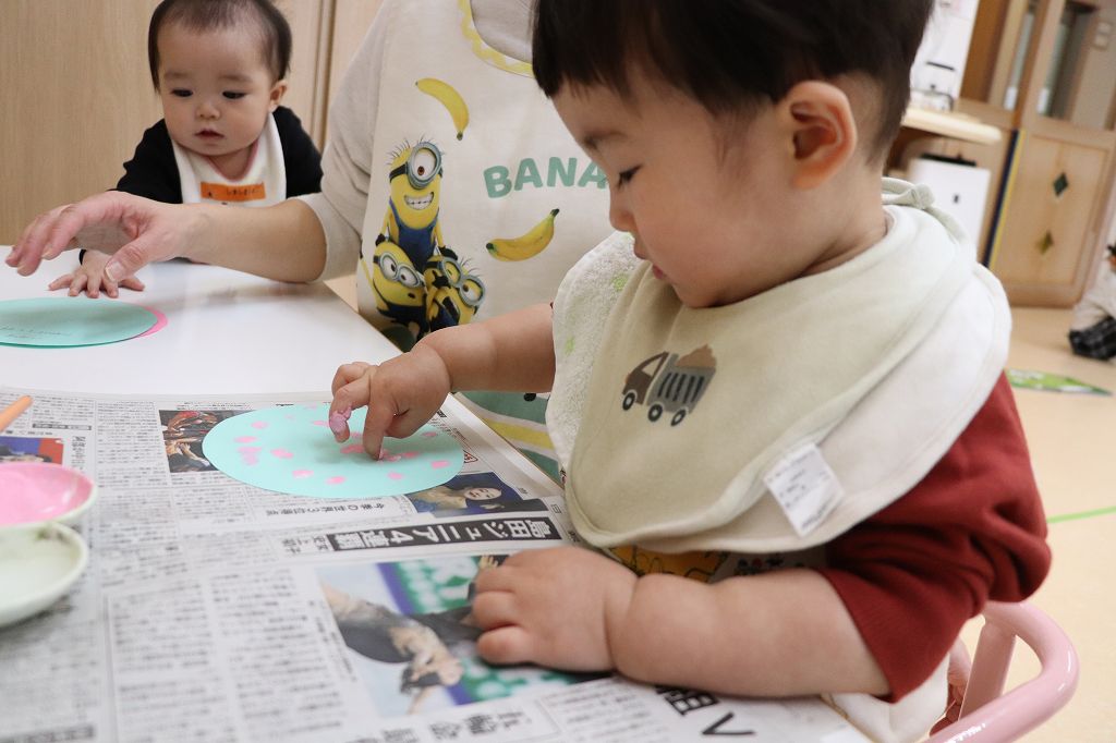 とり組さん、指スタンプ。ポンポンポン。