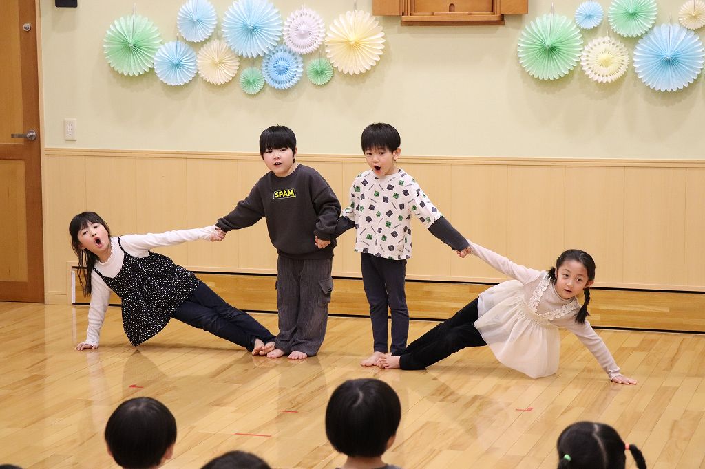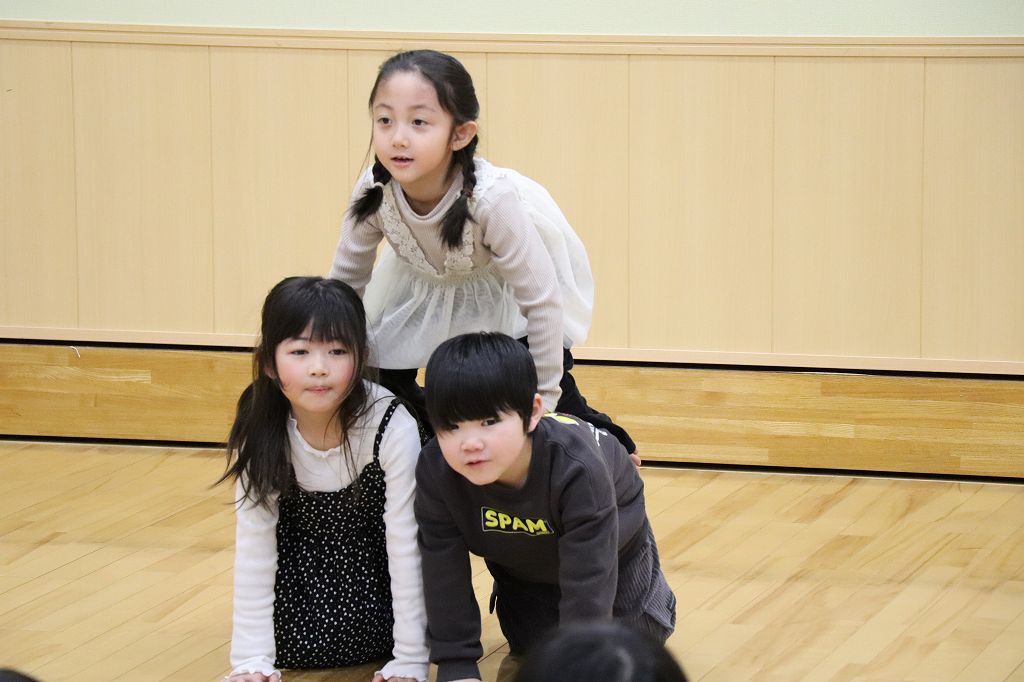 その合間に組体操を披露したかいとくん・ひよりちゃん・ひおりちゃん・ゆらくん。